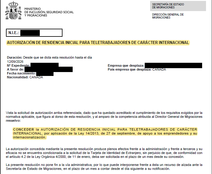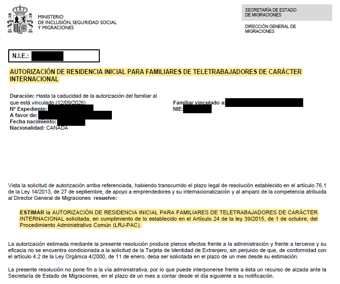 Tras mucho trabajo la Unidad de Grandes Empresas y Colectivos Estratégicos aprobó la solicitud de forma expresa del titular, pero con su familiar, su cónyuge no recibimos la concesión en el plazo previsto legalmente al efecto, que es de veinte días hábiles desde la presentación de la solicitud.